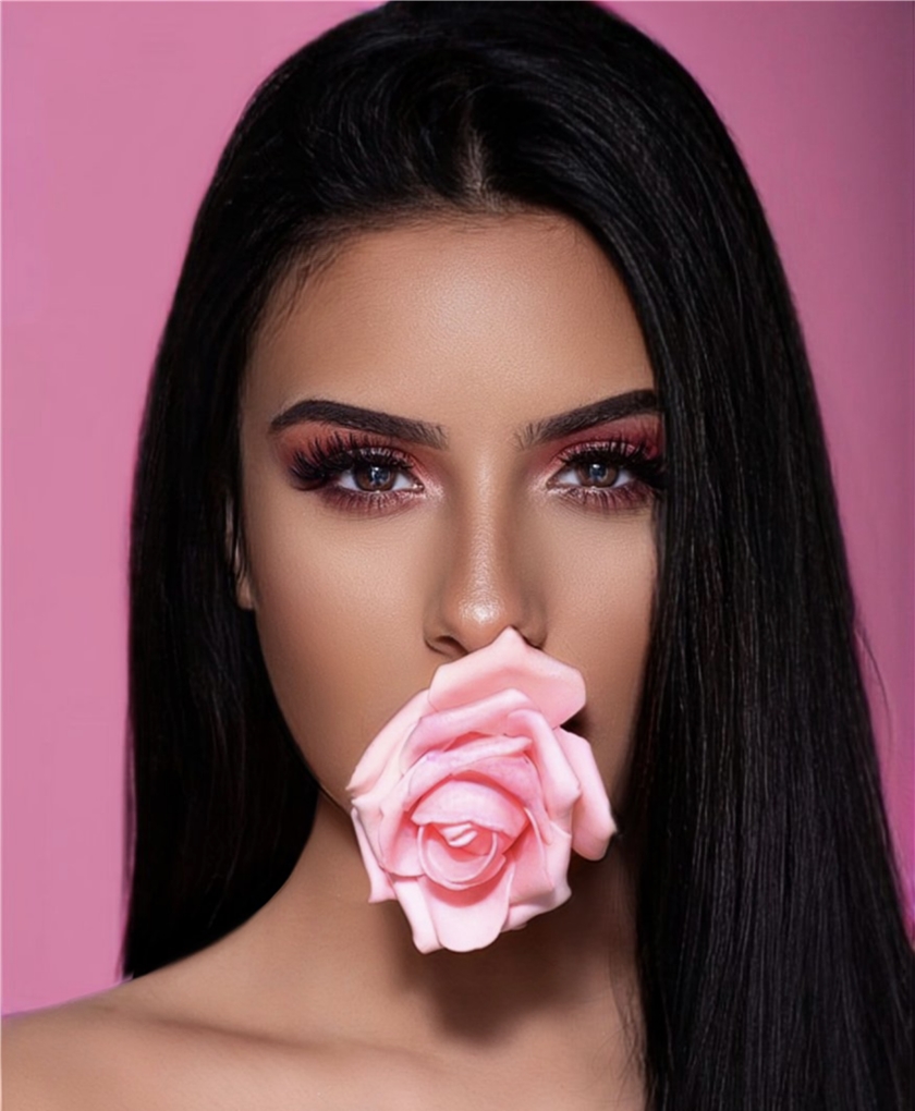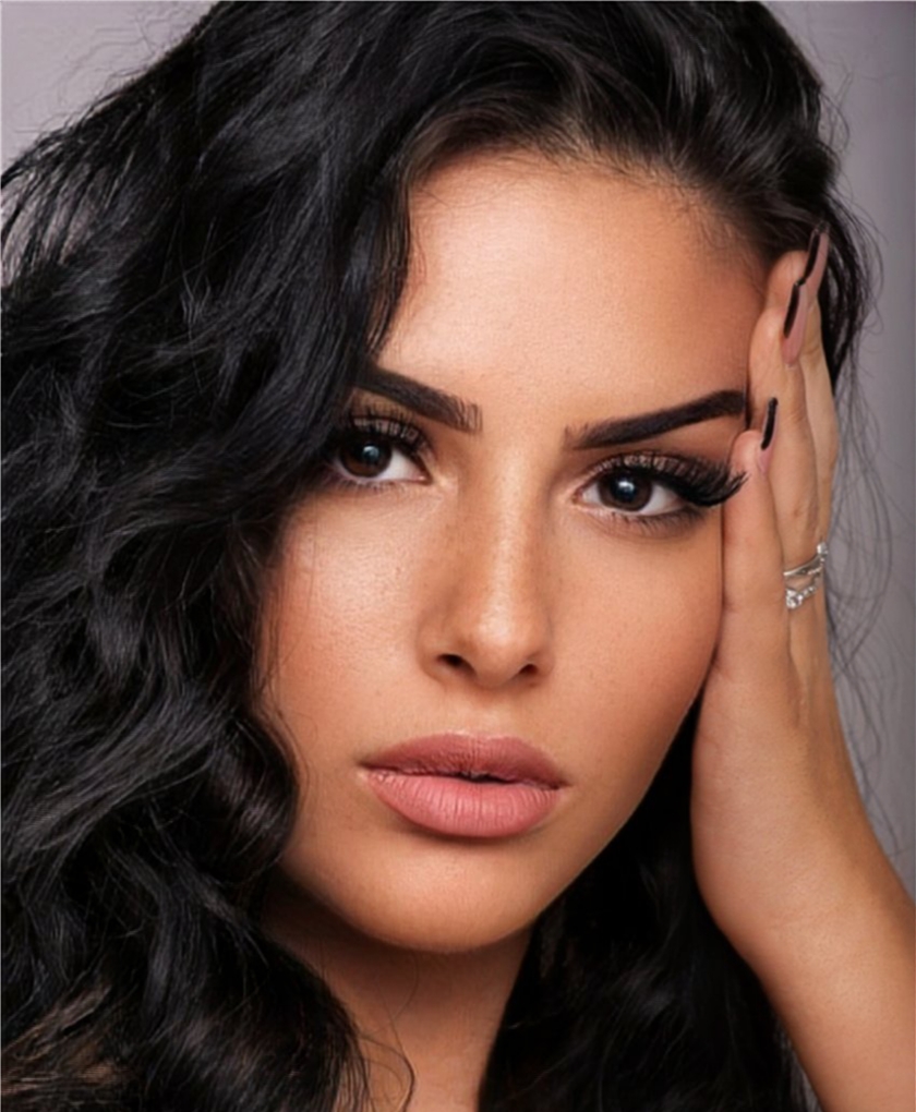| Lange Haare, Piercings am Ohr, Krübchen im Gesicht und eine reine Haut. |